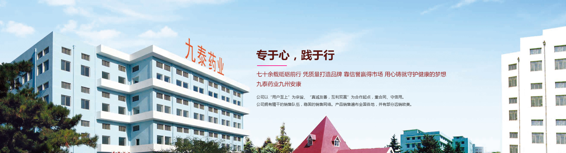 錦州九泰藥業(yè)有限責(zé)任公司是具有七十多年生產(chǎn)歷史的綜合性制藥企業(yè)。前身錦州制藥一廠始建于1951年,1998年改制為錦州九泰藥業(yè)有限責(zé)任公司。近年來各項(xiàng)經(jīng)濟(jì)指標(biāo)一直位于全國(guó)醫(yī)藥生產(chǎn)企業(yè)百強(qiáng)之列,是遼寧省重點(diǎn)制藥企業(yè)之一。曾先后榮獲:省級(jí)先進(jìn)企業(yè)、省級(jí)文明單位、省級(jí)科技先導(dǎo)型企業(yè)省級(jí)用戶滿意企業(yè)等榮譽(yù)稱號(hào)...